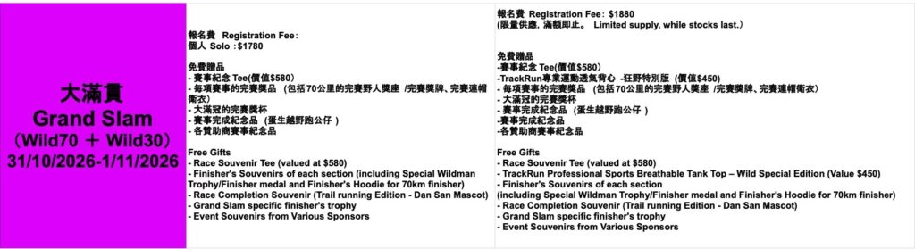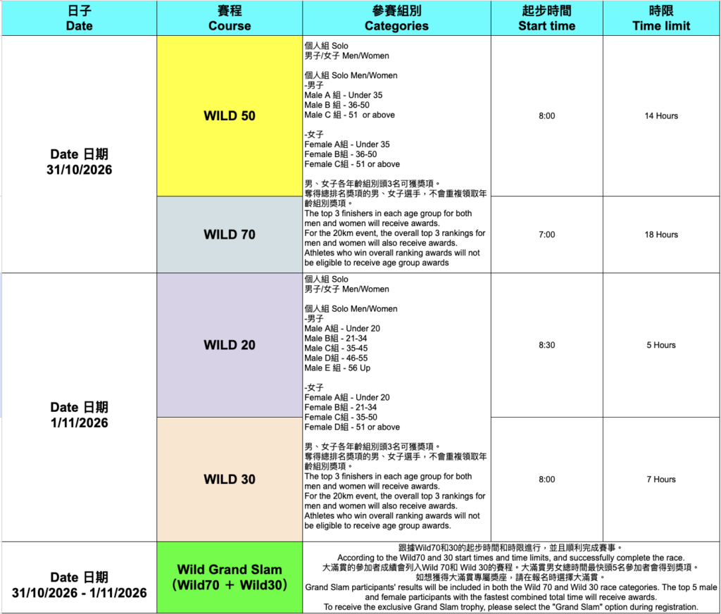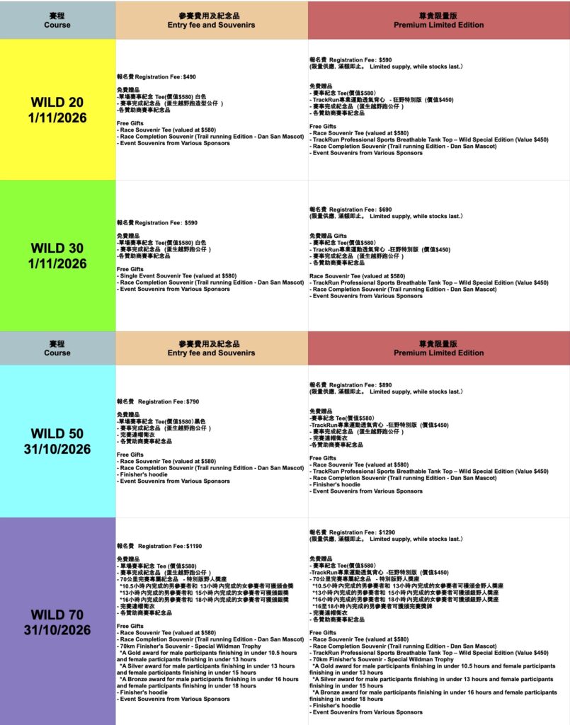 起跑時間:8:00am (Wild30) / 8:30am (Wild20)
